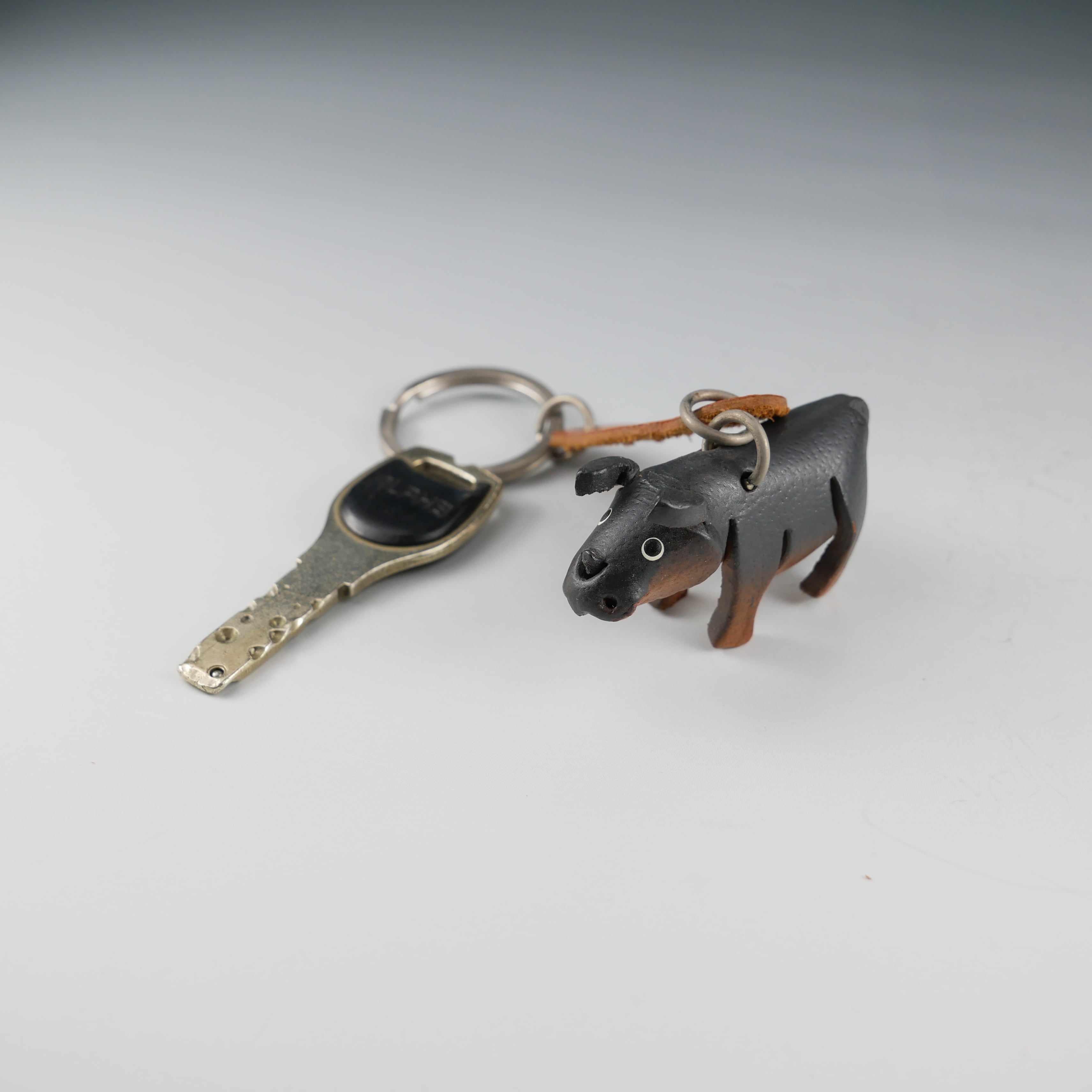 牛革を開いた状態でカットし、熱処理で成型し、手作業で彩色したキーホルダーです。 キーホルダーとしても、バッグのチャームとしても可愛いです。 素材 :牛革 サイズ:本体W5.5 x H4.0 レザープレートとリングの長さは約9cmです。 生産国:タイ