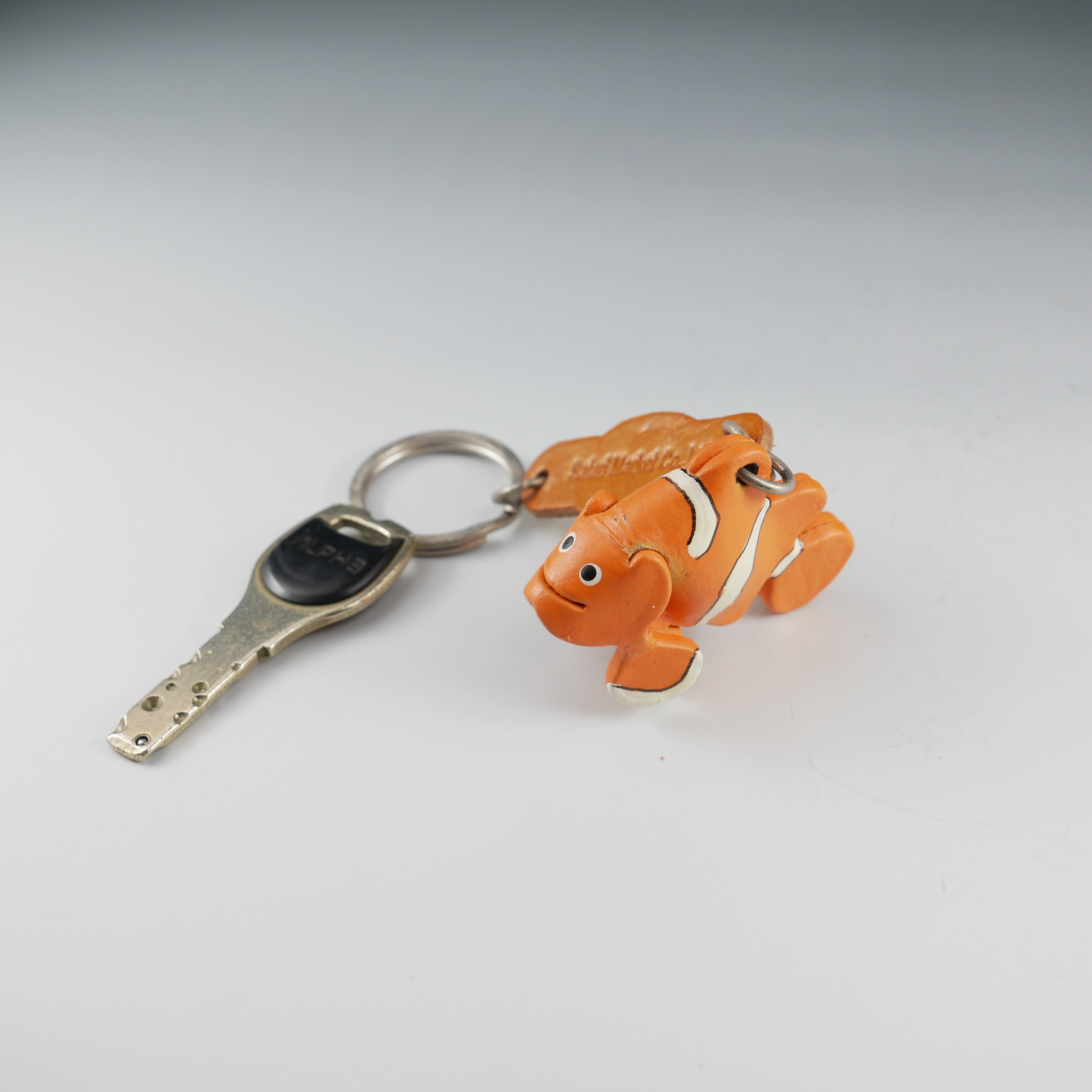 牛革を開いた状態でカットし、熱処理で成型し、手作業で彩色したキーホルダーです。 キーホルダーとしても、バッグのチャームとしても可愛いです。 素材 :牛革 サイズ:本体W5.5 x H4.5 レザープレートとリングの長さは約9cmです。 生産国:タイ